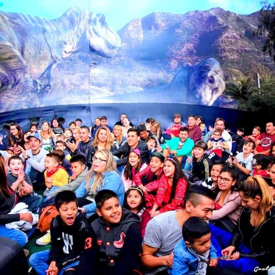 En el planetario inflable, se proyectarán videos 360º relacionados con el universo, el medio ambiente y los dinosaurios.