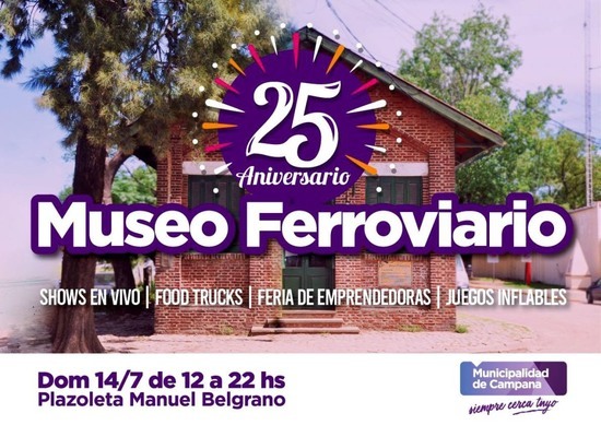 El Museo Ferroviario celebra este domingo su 25º aniversario. Además, habrá shows en vivo, 6 food trucks, feria de emprendedoras y juegos inflables.