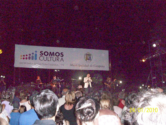 Fue cantando sus canciones según la década a la que pertenecían, años ´60 , ´70, ´80 y ´90. Ricardo Stecconi, dueño de una de las radios de Campana, le dio un reconocimiento por su trayectoria, y mencionó que los unía "una amistad de muchísimos años".